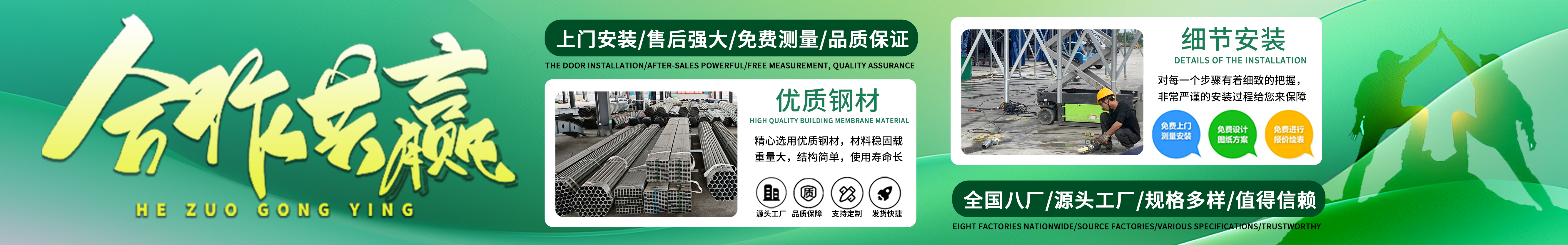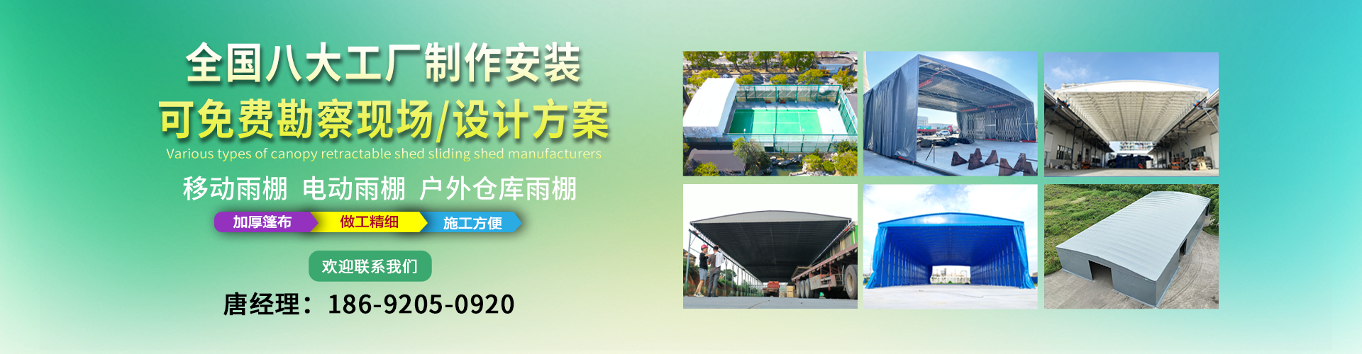 湖南鑫建華鋼結構工程有限公司是一家電動雨棚、膜結構車棚研發,生產銷售,施工安裝于一體的專業鋼結構科技公司,主要產品有伸縮雨棚,電動雨棚,膜結構車棚等。 湖南地區職員目前有200多人,自建廠房15600平方米,配備先進的生產流水線,使每件品質產品的堅實基礎?! 」驹诤怅枺K州,天津,濟南,鄭州,江門,佛山,武漢,重慶均設有服務工廠,擁有專業的技術團隊,配備先進的設備和流水線生產,產能高,貨源充足,發貨速度快,服務區域廣。 移動伸縮棚適用于通道臨時倉儲、戶外運動遮陽、污水池遮蓋、能源交通、熱力化工、礦山、船舶制造及市政建設、物流、碼頭等領域的構件制作加工,成品半成品存放、倉庫、野外儀器設備操作用房等。尤其是對工廠發貨、倉儲臨時遮雨防嗮,梅雨期較長、建設周期較短的工程施工等特別適用。還可根據用戶需求量身定制、適合企業所需不同款式的產品?! ∥夜緢猿帧罢\信社會為本,客戶滿意為榮”的經營理念,做到質量把控,嚴格管理,精益求精,恪守承諾。使鑫建華逐步走向成熟,其系統化、專業化日趨完善。以專業的技術、科學的管理,更高的產品質量,優良的企業信譽,真誠的客戶服務,靈活多樣的經營方式和務實創新的企業精神愿與社會各界攜手合作,為推動智能鋼結構建筑事業的發展而不斷努力。...